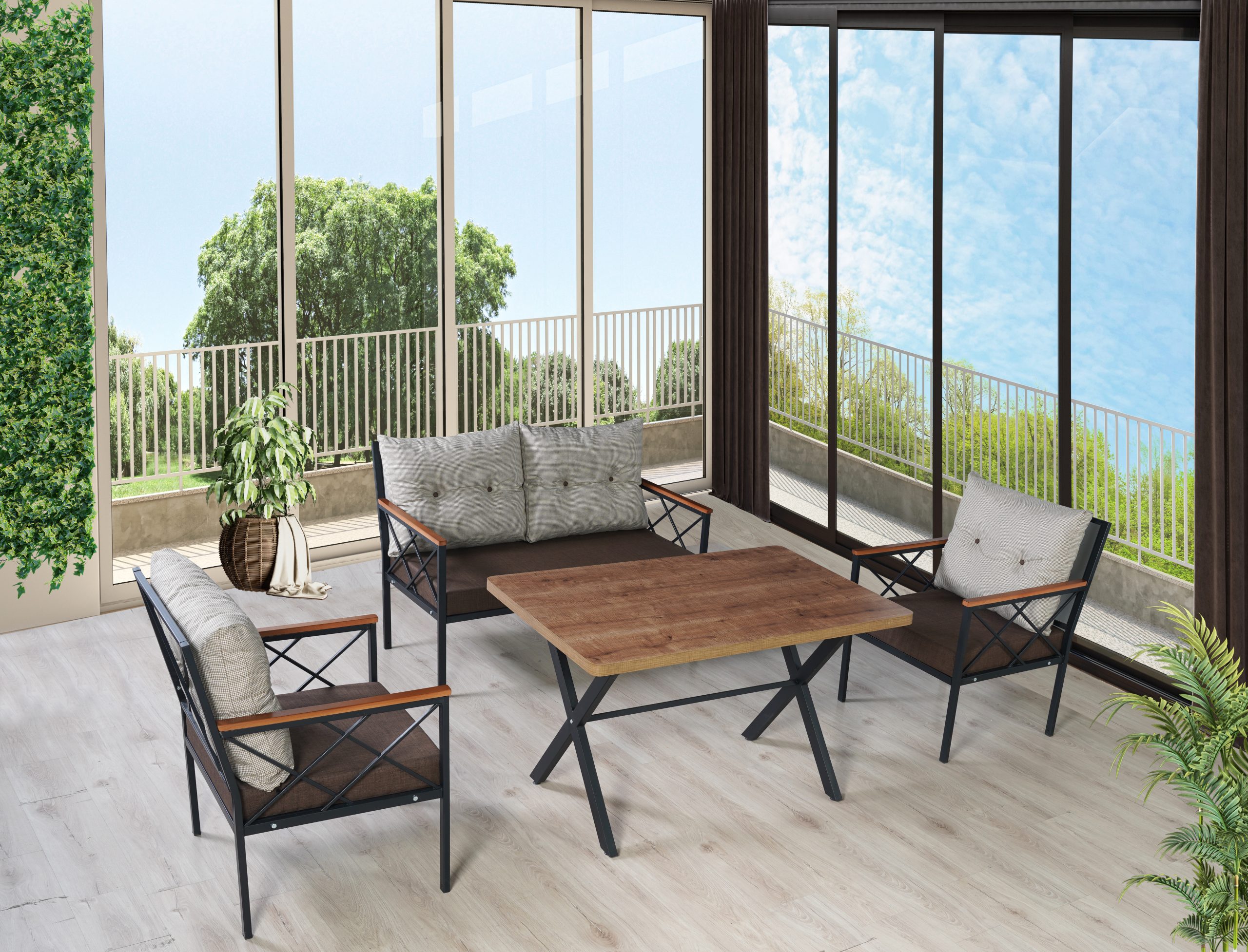 Bağlıca Rattan Füme Oturma Grubu